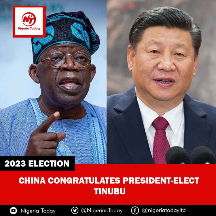 The Chinese government have congratulated President-elect, Bola Ahmed Tinubu on his victory in the February 25, 2023, presidential election in Nigeria.